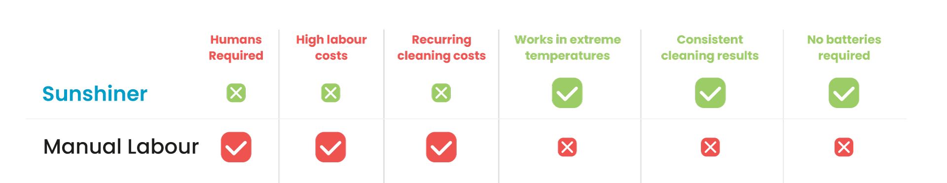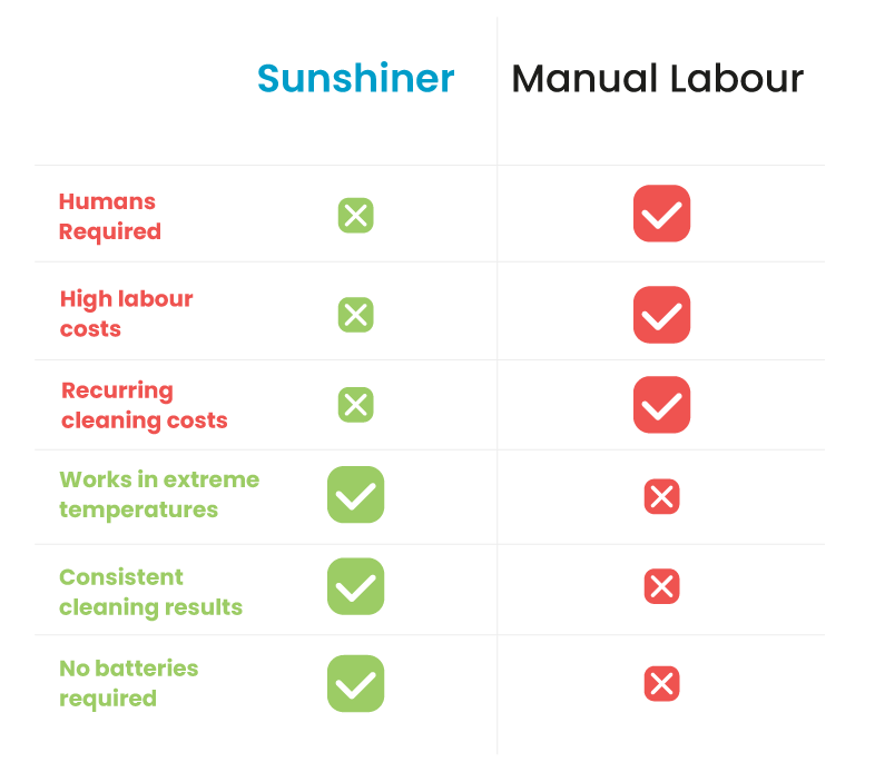 In today's solar industry, the prevailing method for maintaining PV farm cleanliness is through manual labor, which, unfortunately, yields exceptionally poor results.